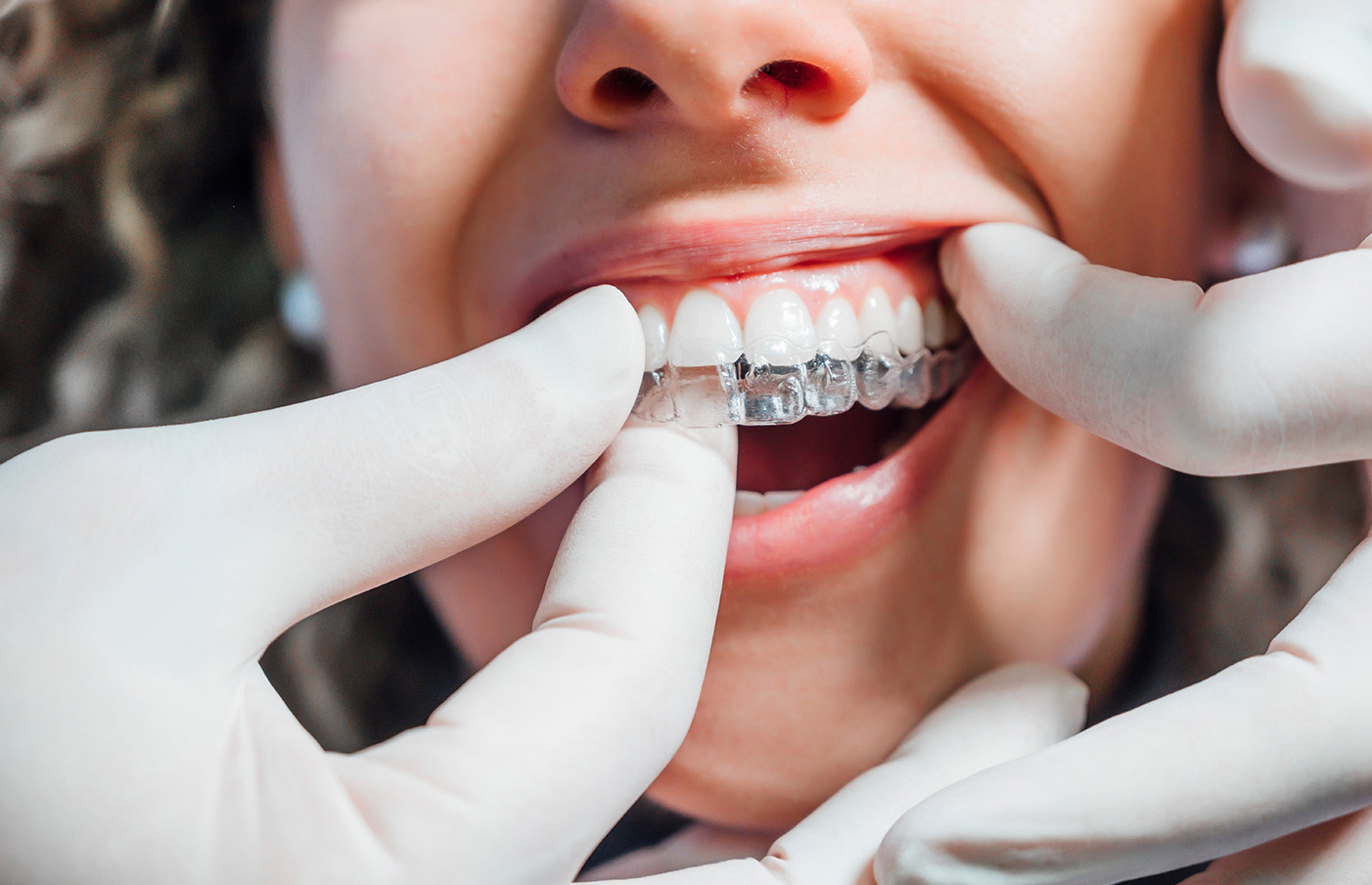 Transparente Aligner wie Invisalign funktionieren ähnlich wie Zahnspangen. Sie lenken die Zahnbewegungen durch einen sanften, schrittweisen Druck. Im Gegensatz zu herkömmlichen Geräten und Brackets sind sie jedoch herausnehmbar, Sie können ganz normal essen, wonach Ihnen der Sinn steht, und die Aligner bei Bedarf herausnehmen, beispielsweise zu besonderen Anlässen.